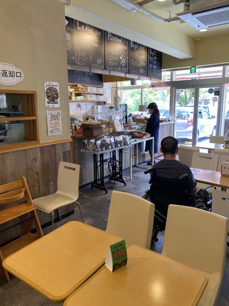入り口には段差解消のスロープがあり、車椅子でも安心して入店できました。